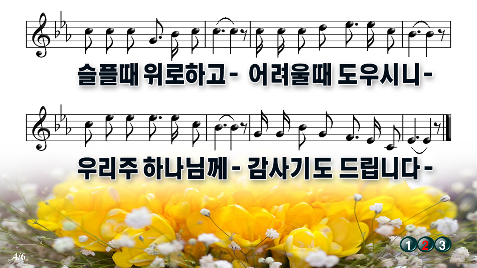 누군가 소중하게 올려주신 악보ppt파일에 절수 표시와 악보를 상단으로 끌어 올렸습니다.위에 업로드 파일은 PPT입니다.