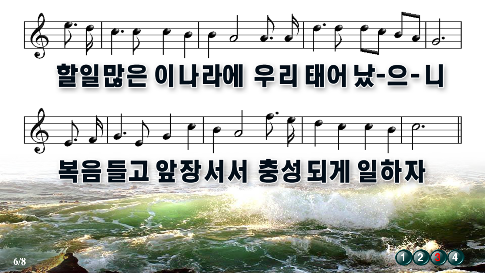 누군가 소중하게 올려주신 악보ppt파일에 절수 표시와 악보를 상단으로 끌어 올렸습니다.위에 업로드 파일은 PPT입니다.