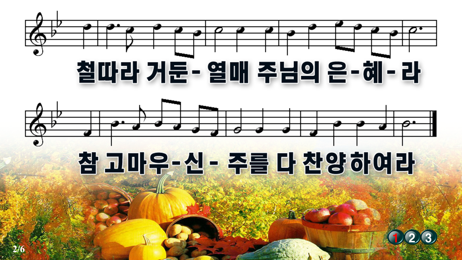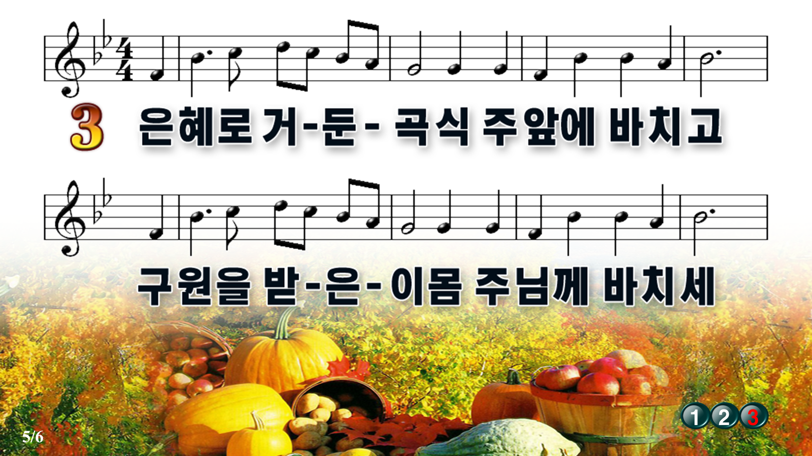 누군가 소중하게 올려주신 악보ppt파일에 절수 표시와 악보를 상단으로 끌어 올렸습니다.위에 업로드 파일은 PPT입니다.