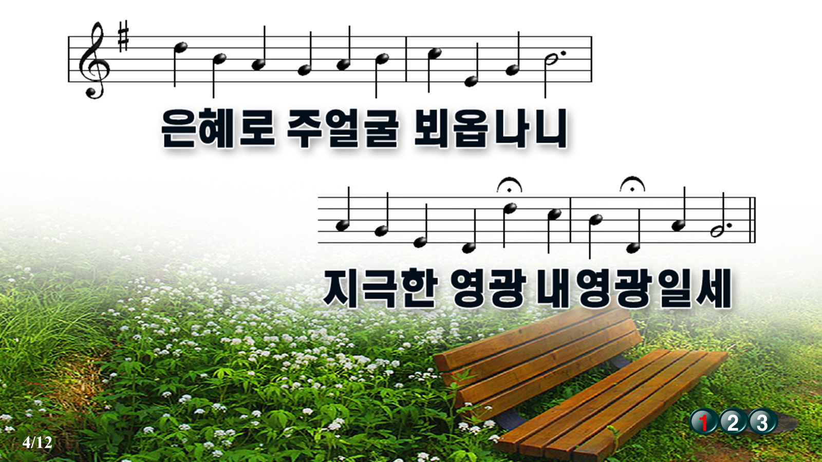 누군가 소중하게 올려주신 악보ppt파일에 절수 표시와 악보를 상단으로 끌어 올렸습니다.위에 업로드 파일은 PPT입니다.