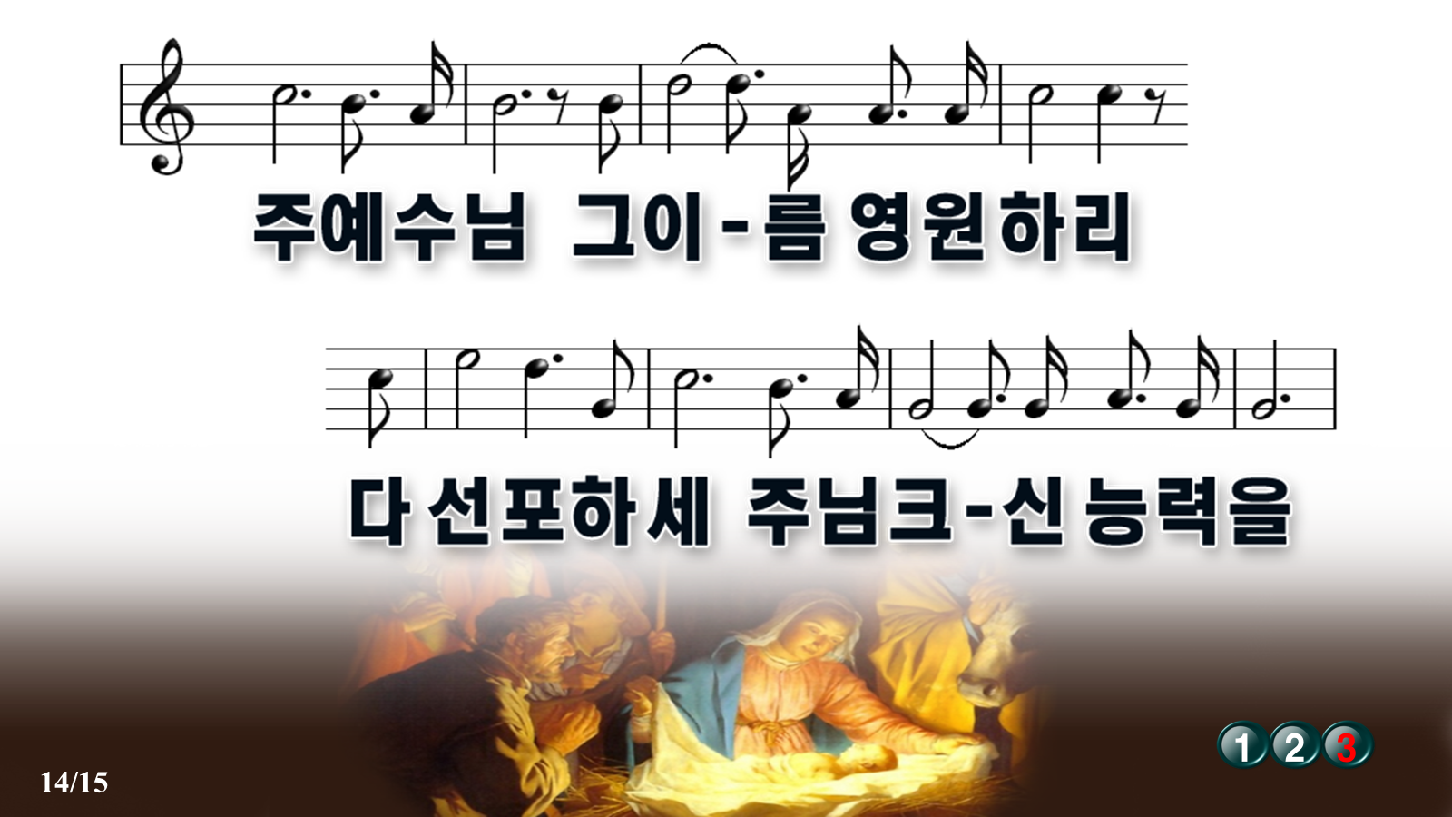 누군가 소중하게 올려주신 악보ppt파일에 절수 표시와 악보를 상단으로 끌어 올렸습니다.위에 업로드 파일은 PPT입니다.