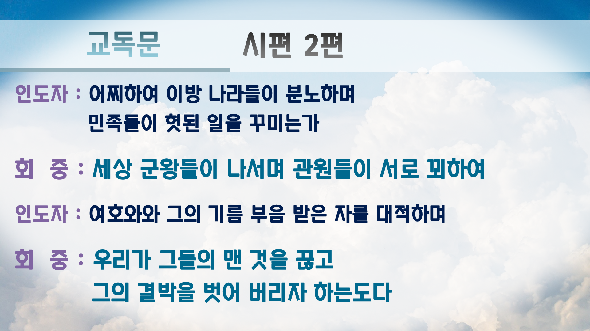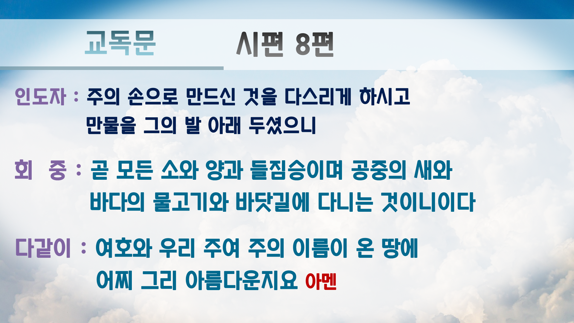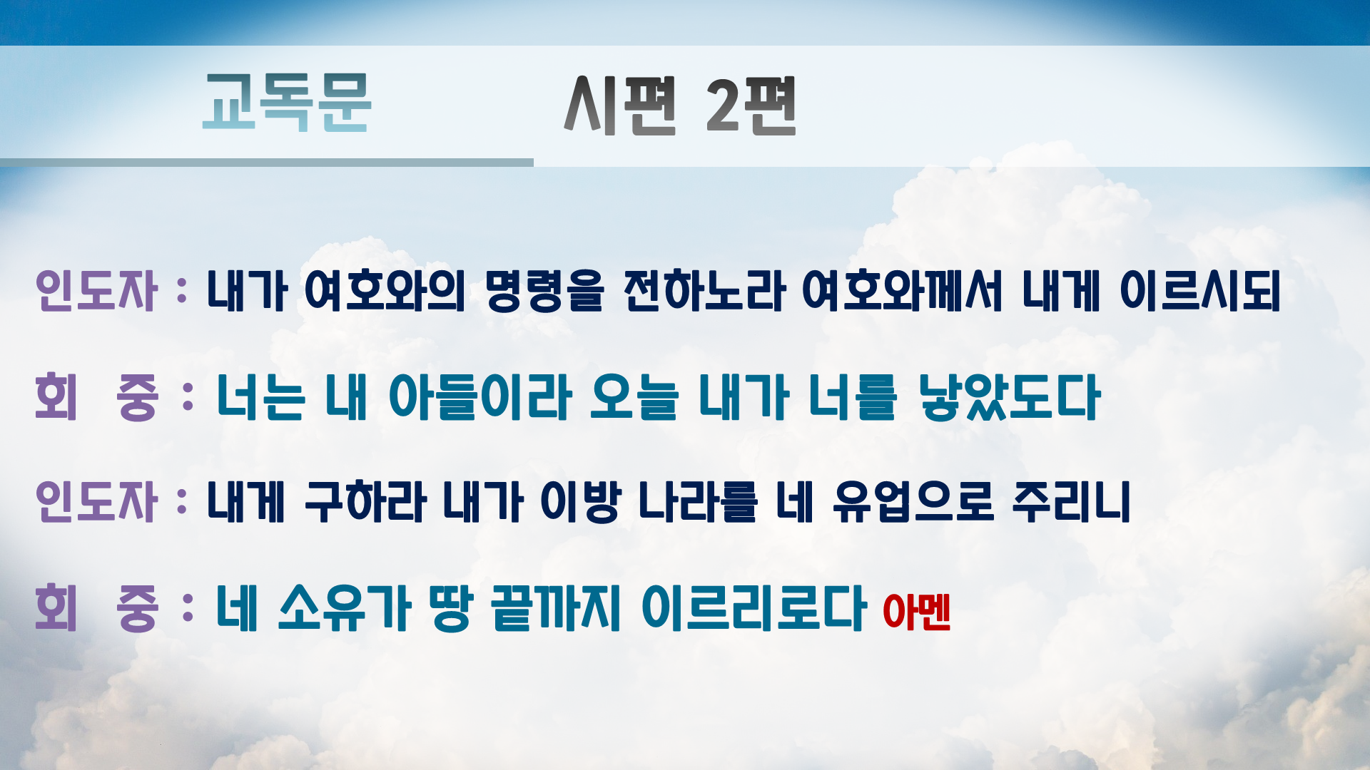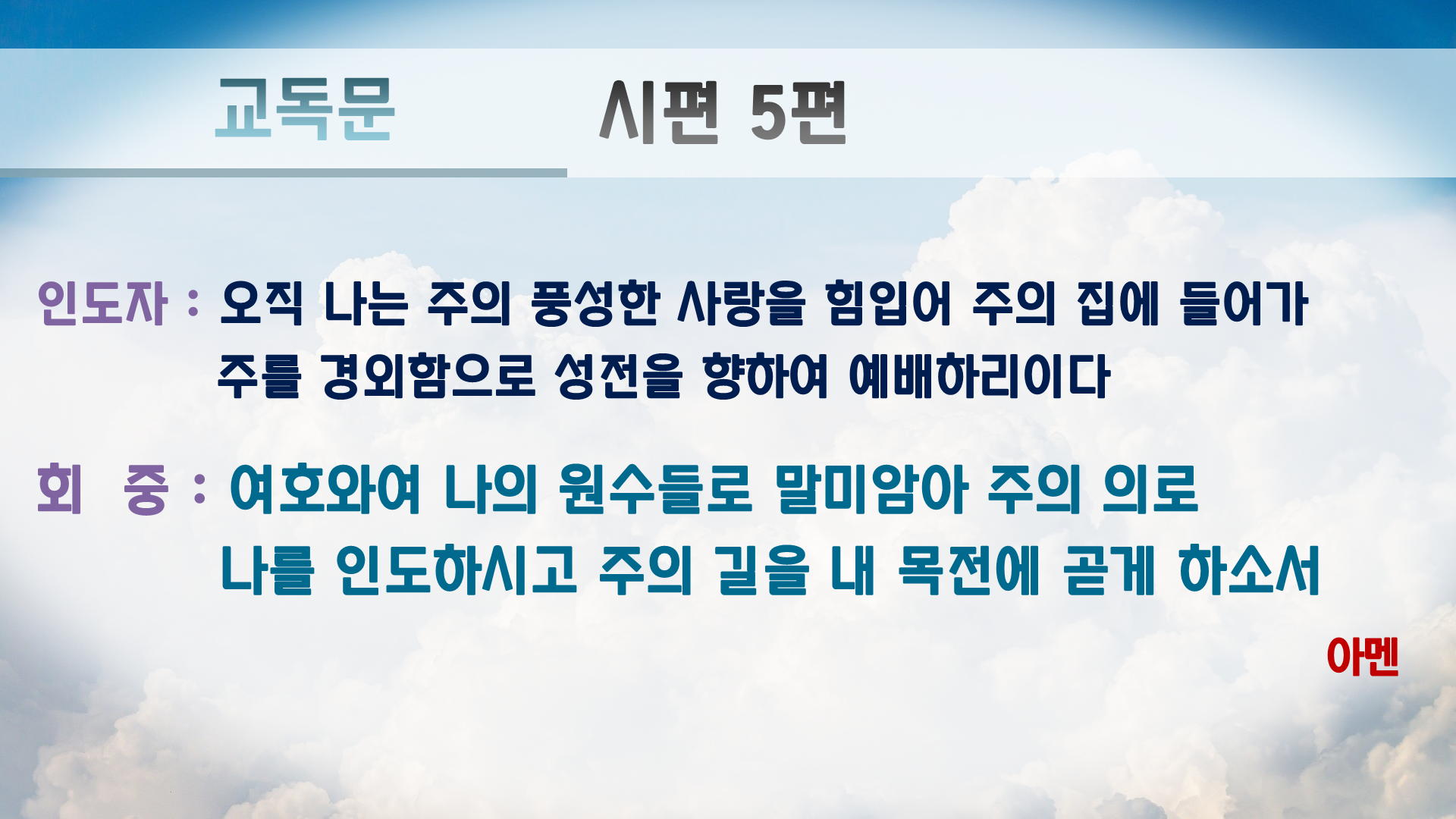 교독문에는 원래 '아멘'이 없지만 PPT만 보는 회중쪽에서 언제 끝나는지 몰라하셔서 끝나는 곳에 '아멘'을 추가 했습니다.