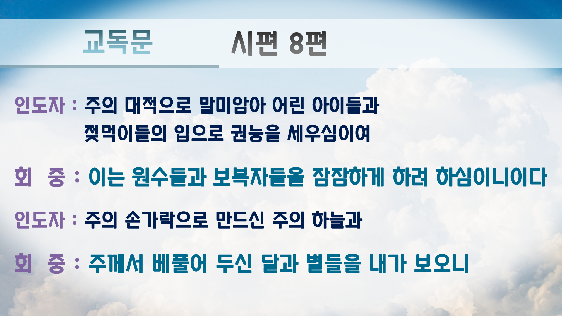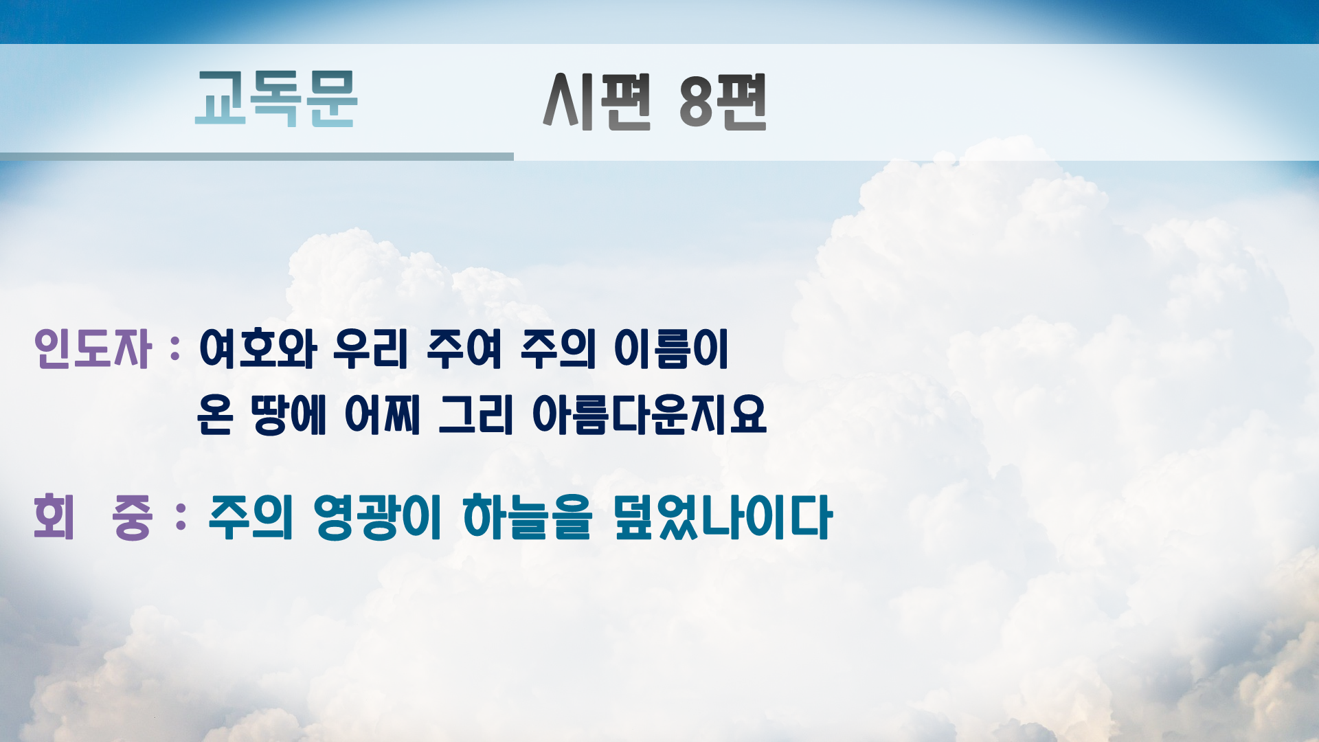 (다같이) 여호와 우리 주여 주의 이름이 온 땅에 어찌 그리 아름다운지요(1-9)