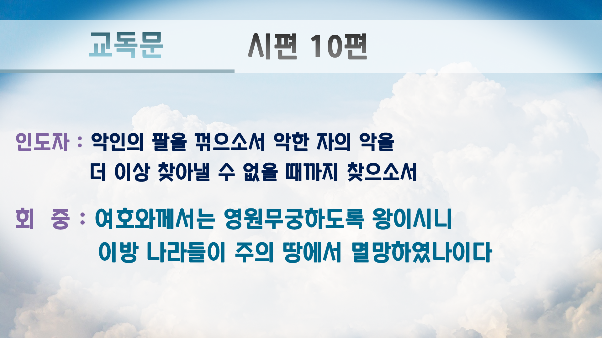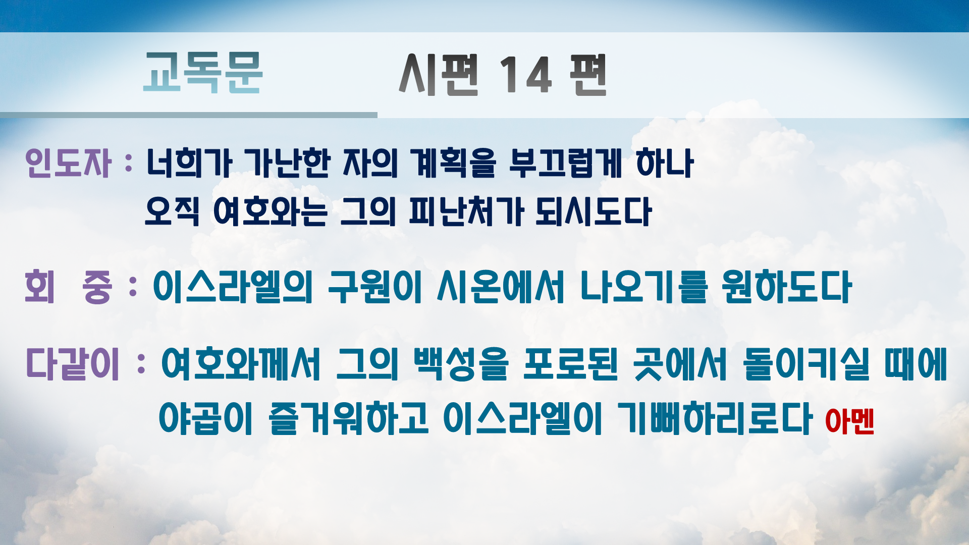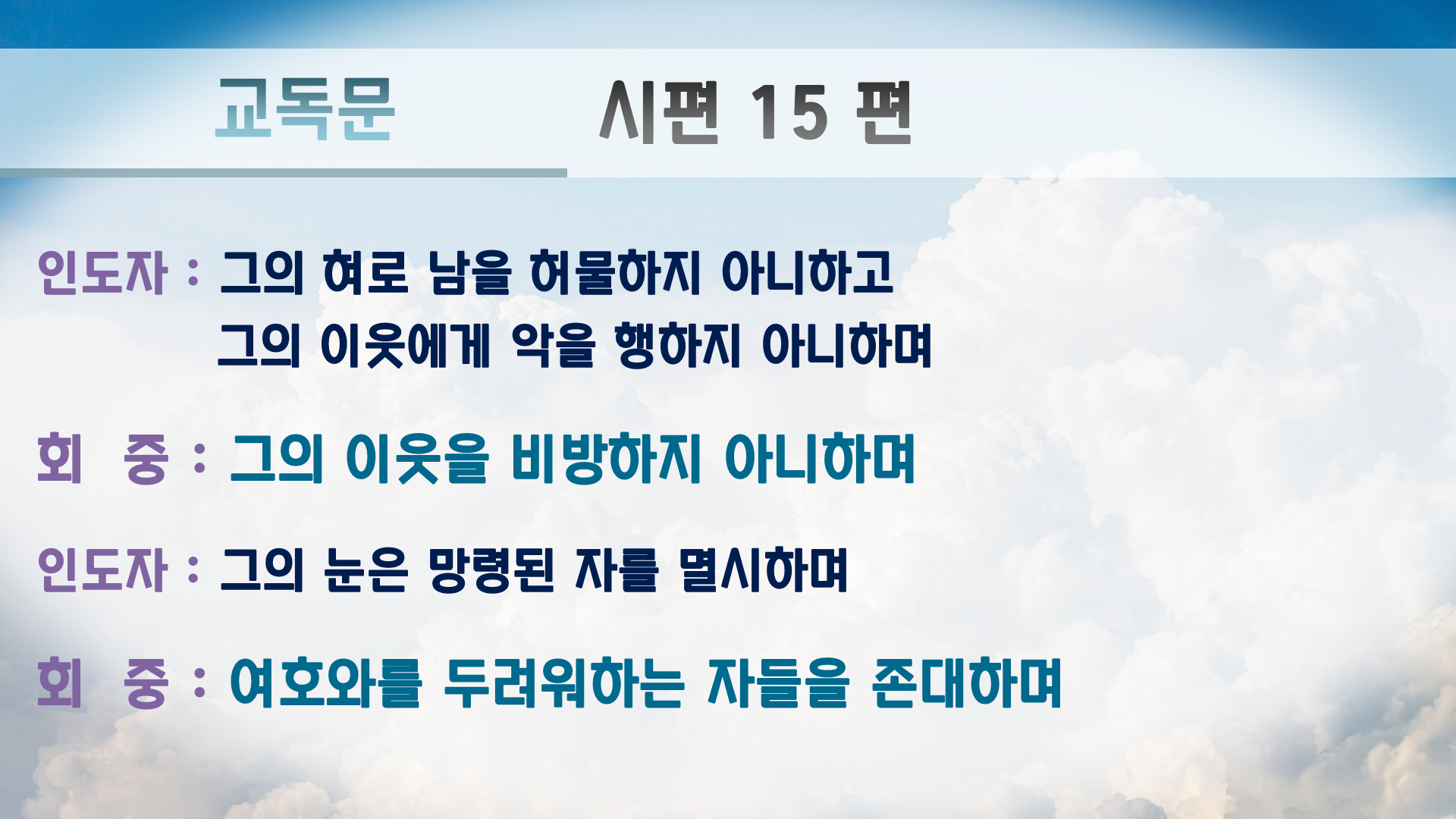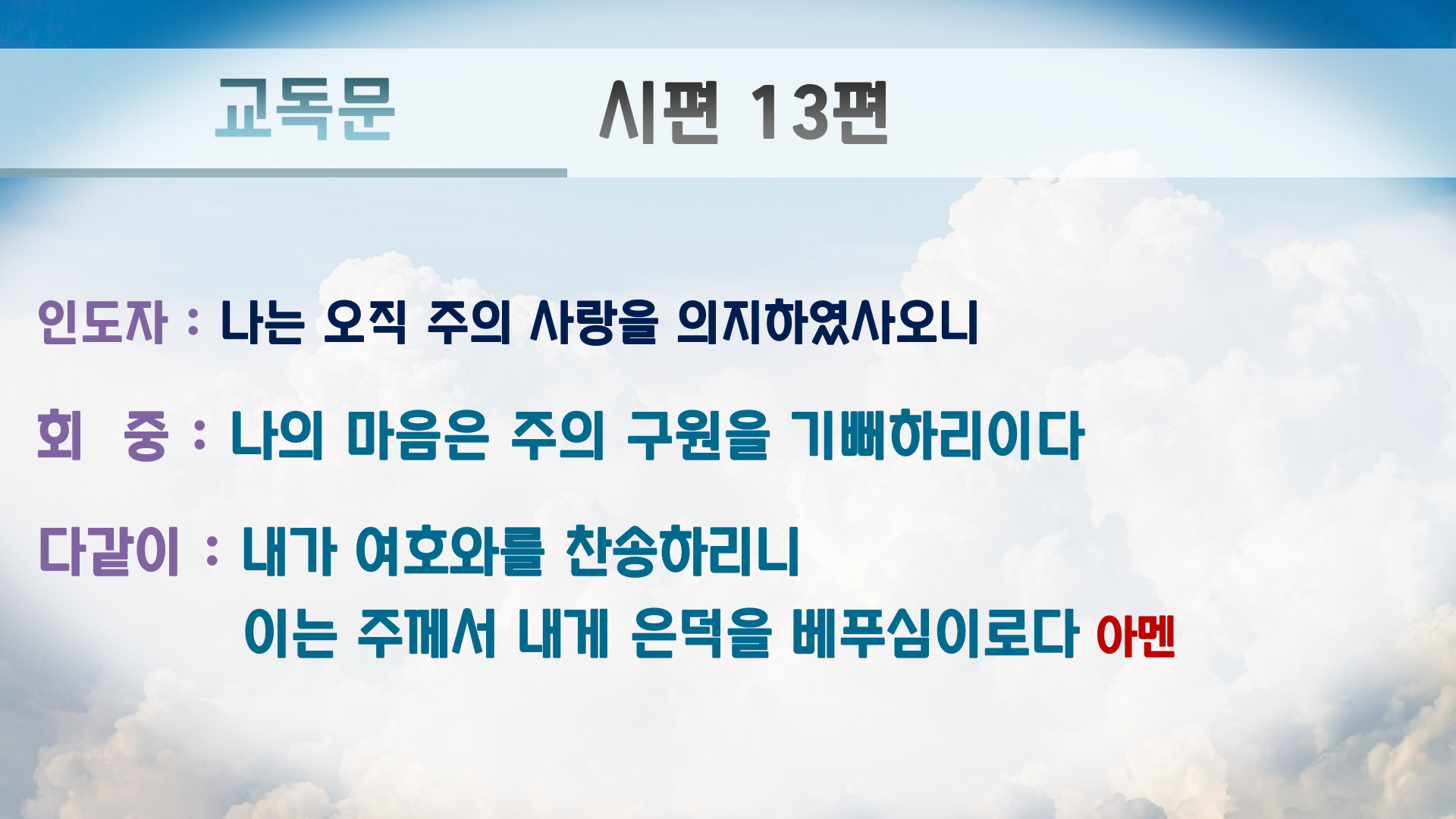 교독문에는 원래 '아멘'이 없지만 PPT만 보는 회중쪽에서 언제 끝나는지 몰라하셔서 끝나는 곳에 '아멘'을 추가 했습니다.