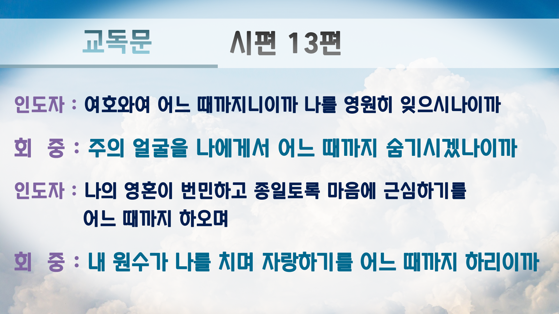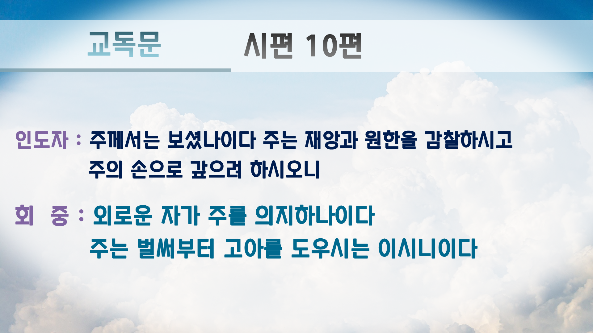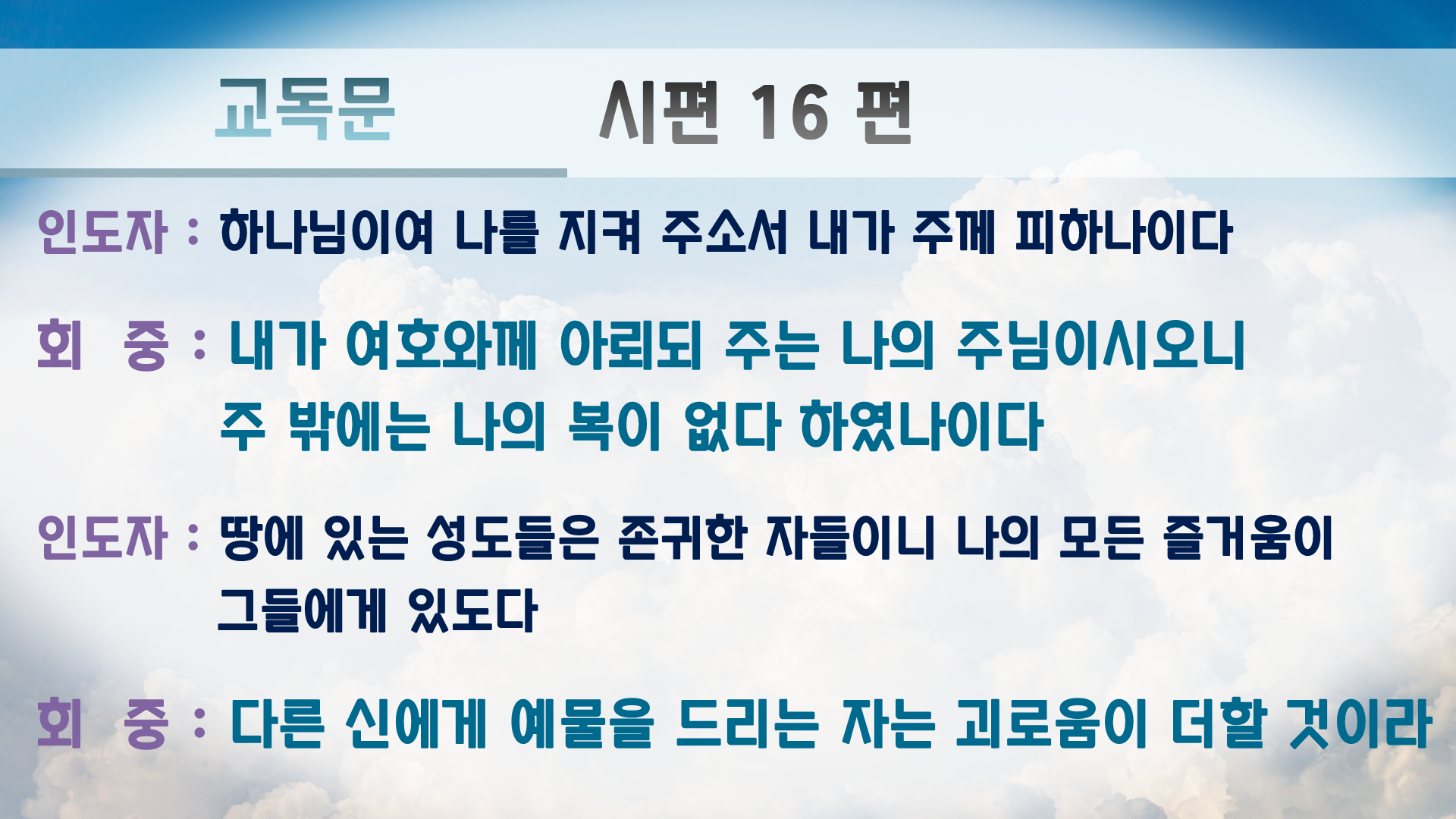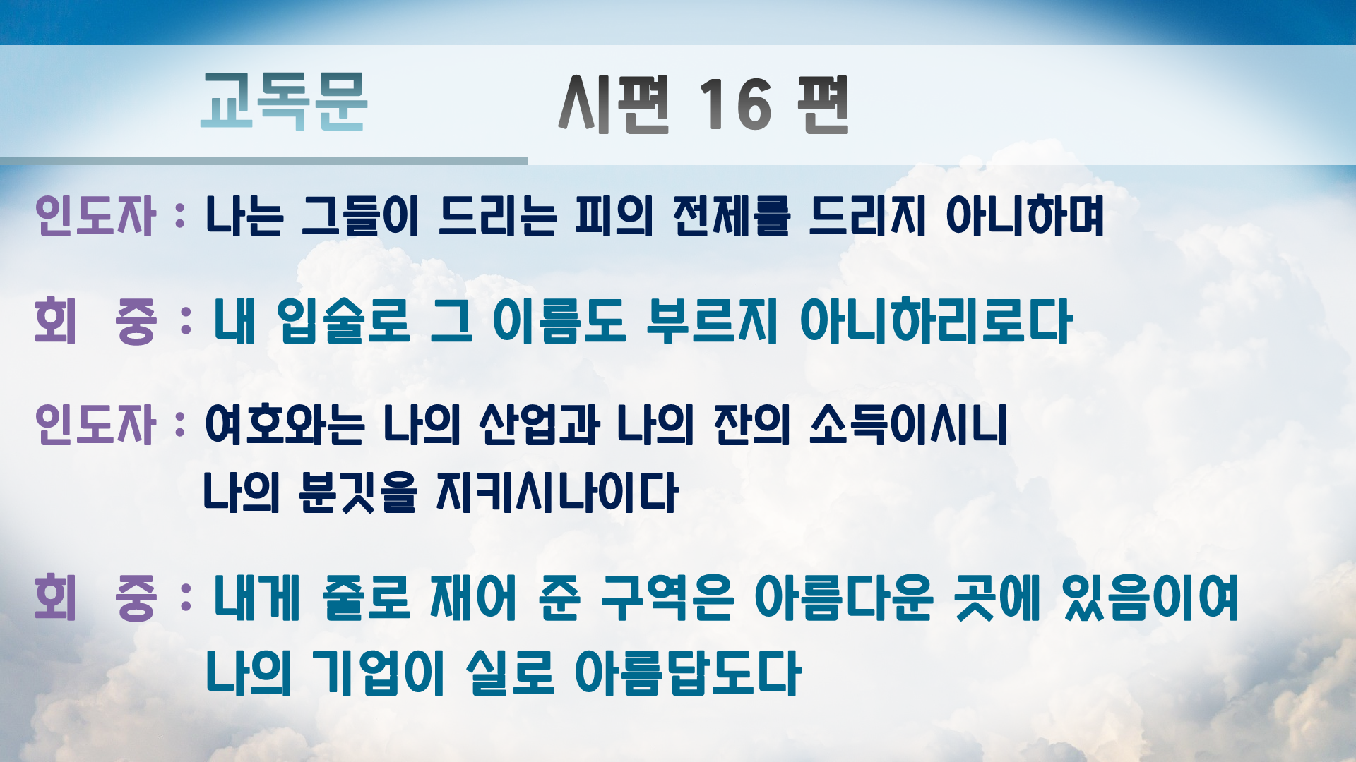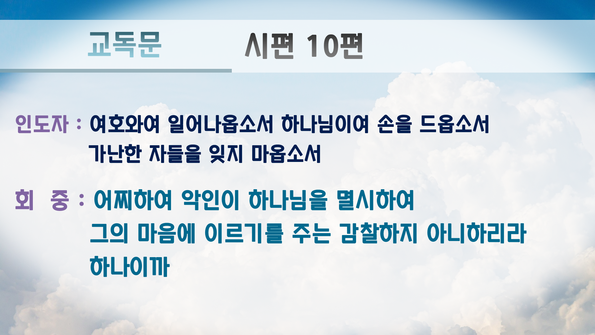 교독문에는 원래 '아멘'이 없지만 PPT만 보는 회중쪽에서 언제 끝나는지 몰라하셔서 끝나는 곳에 '아멘'을 추가 했습니다.