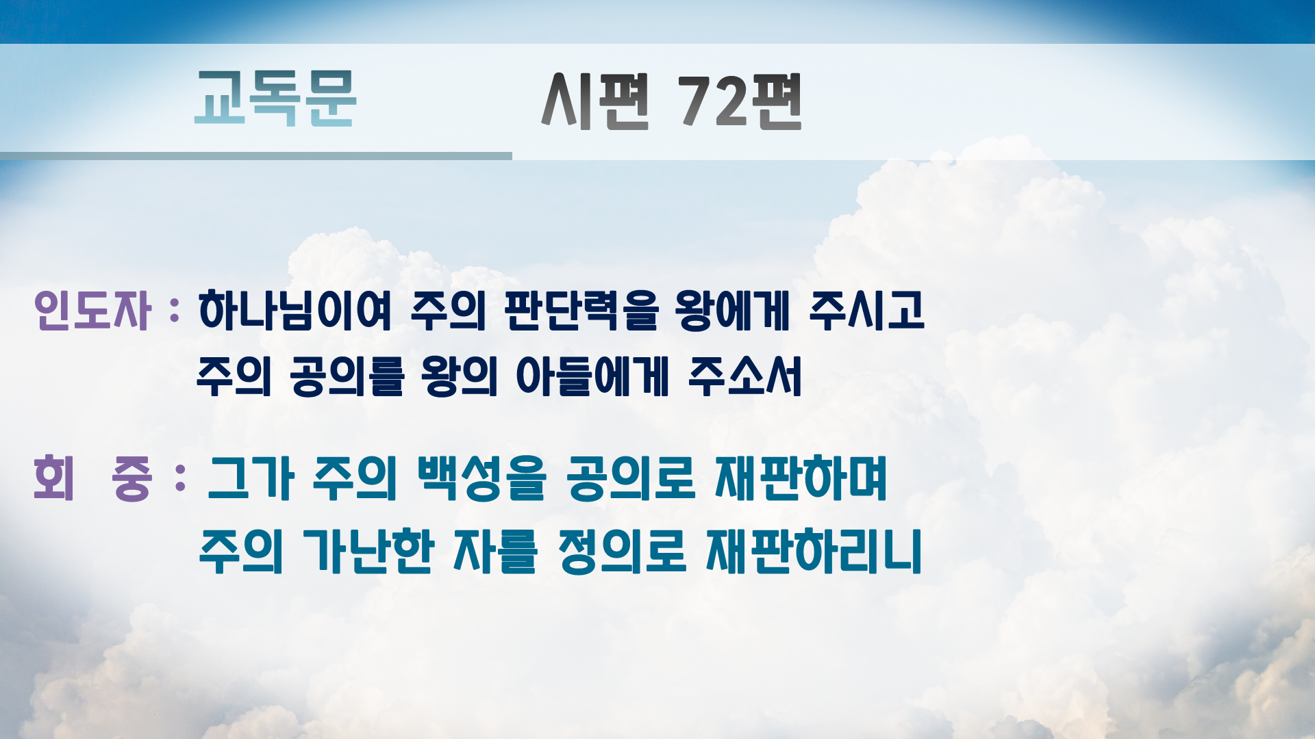 그가 주의 백성을 공의로 재판하며 주의 가난한 자를 정의로 재판하리니