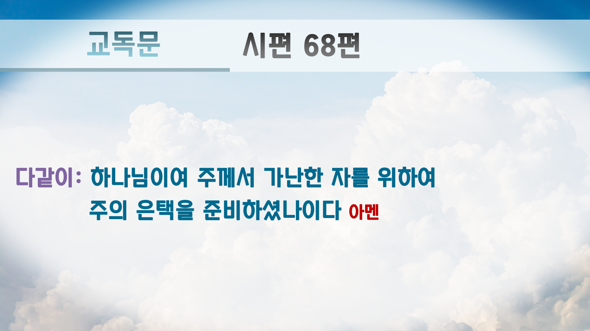 (다같이) 하나님이여 주께서 가난한 자를 위하여 주의 은택을 준비하셨나이다 (10하)