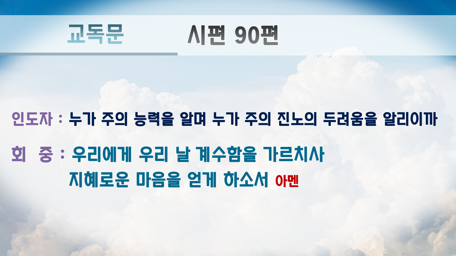 교독문에는 원래 '아멘'이 없지만 PPT만 보는 회중쪽에서 언제 끝나는지 몰라하셔서 끝나는 곳에 '아멘'을 추가 했습니다.