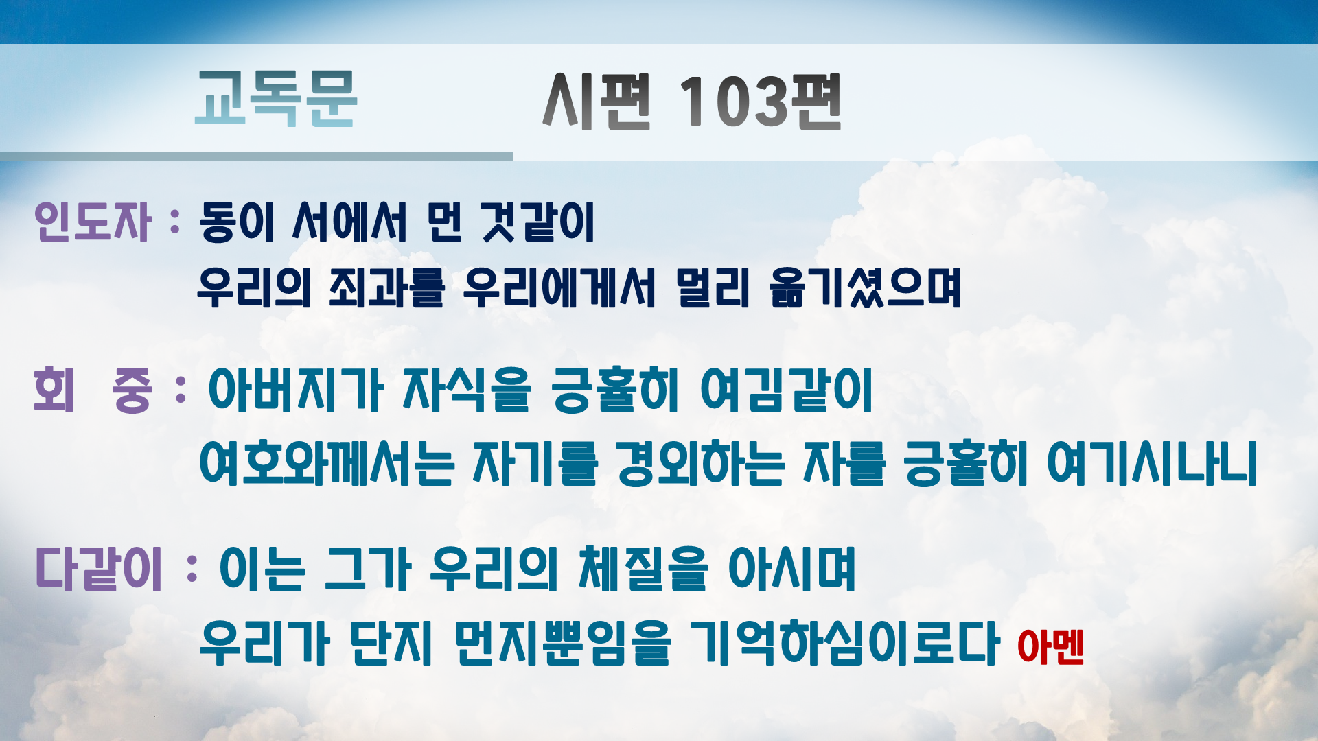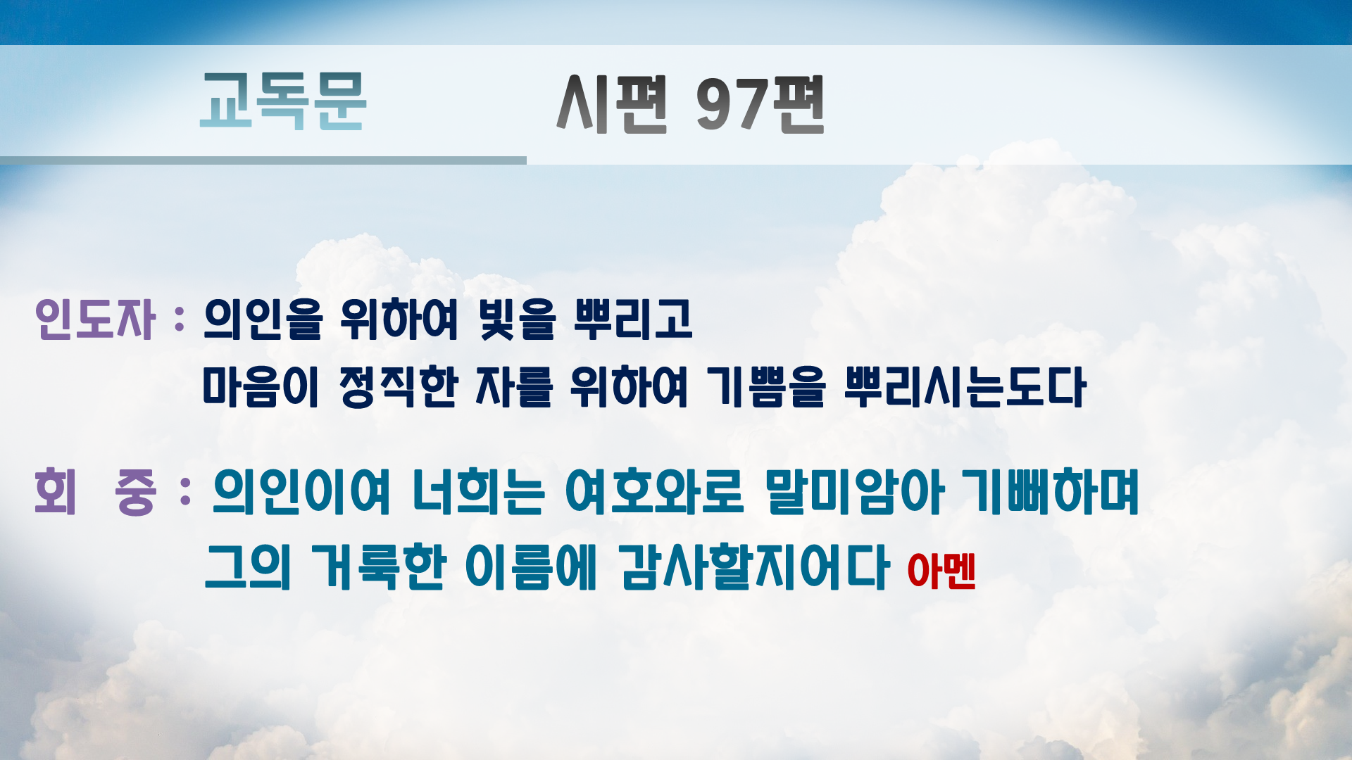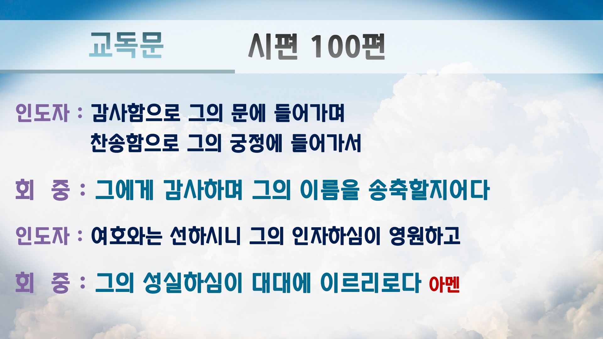 교독문에는 원래 '아멘'이 없지만 PPT만 보는 회중쪽에서 언제 끝나는지 몰라하셔서 끝나는 곳에 '아멘'을 추가 했습니다.