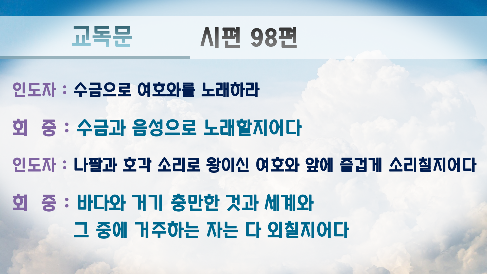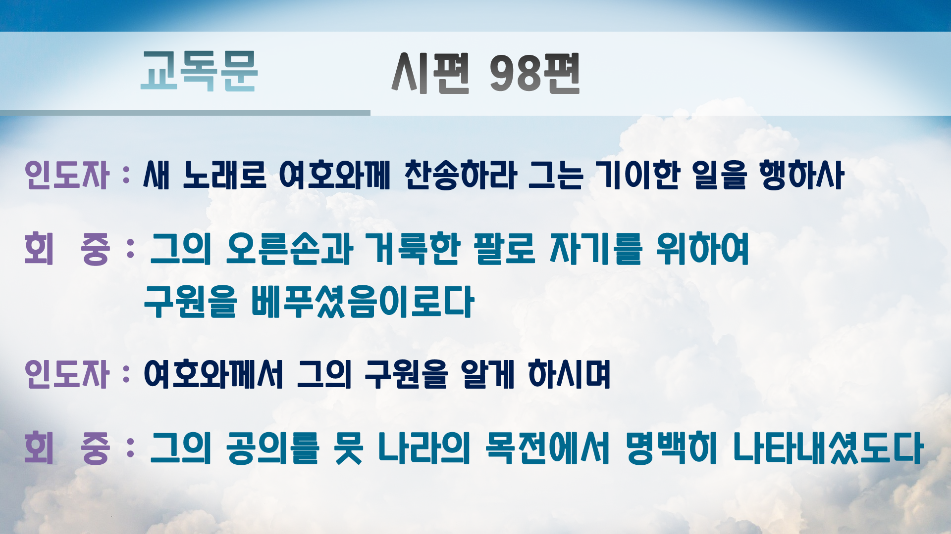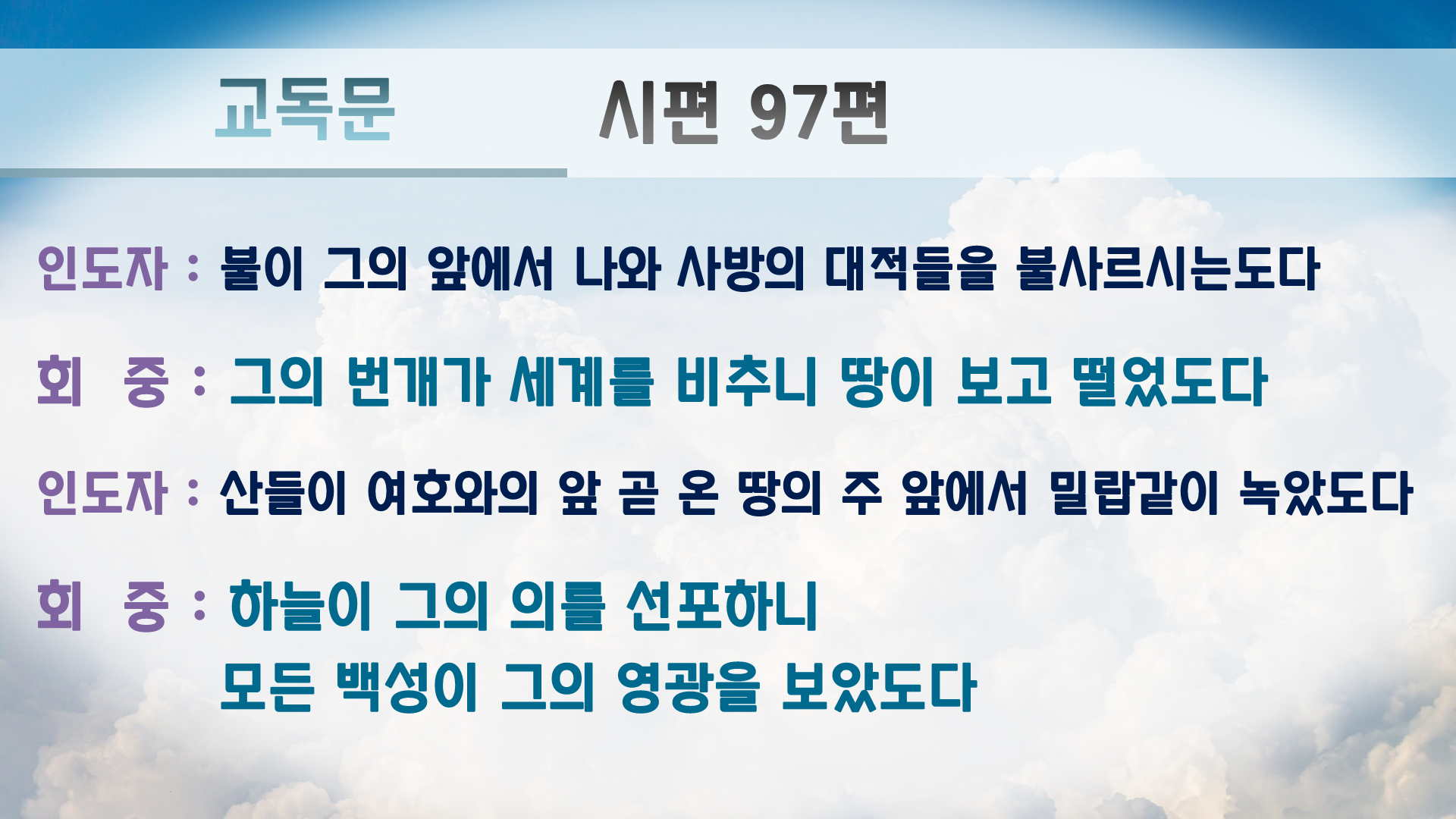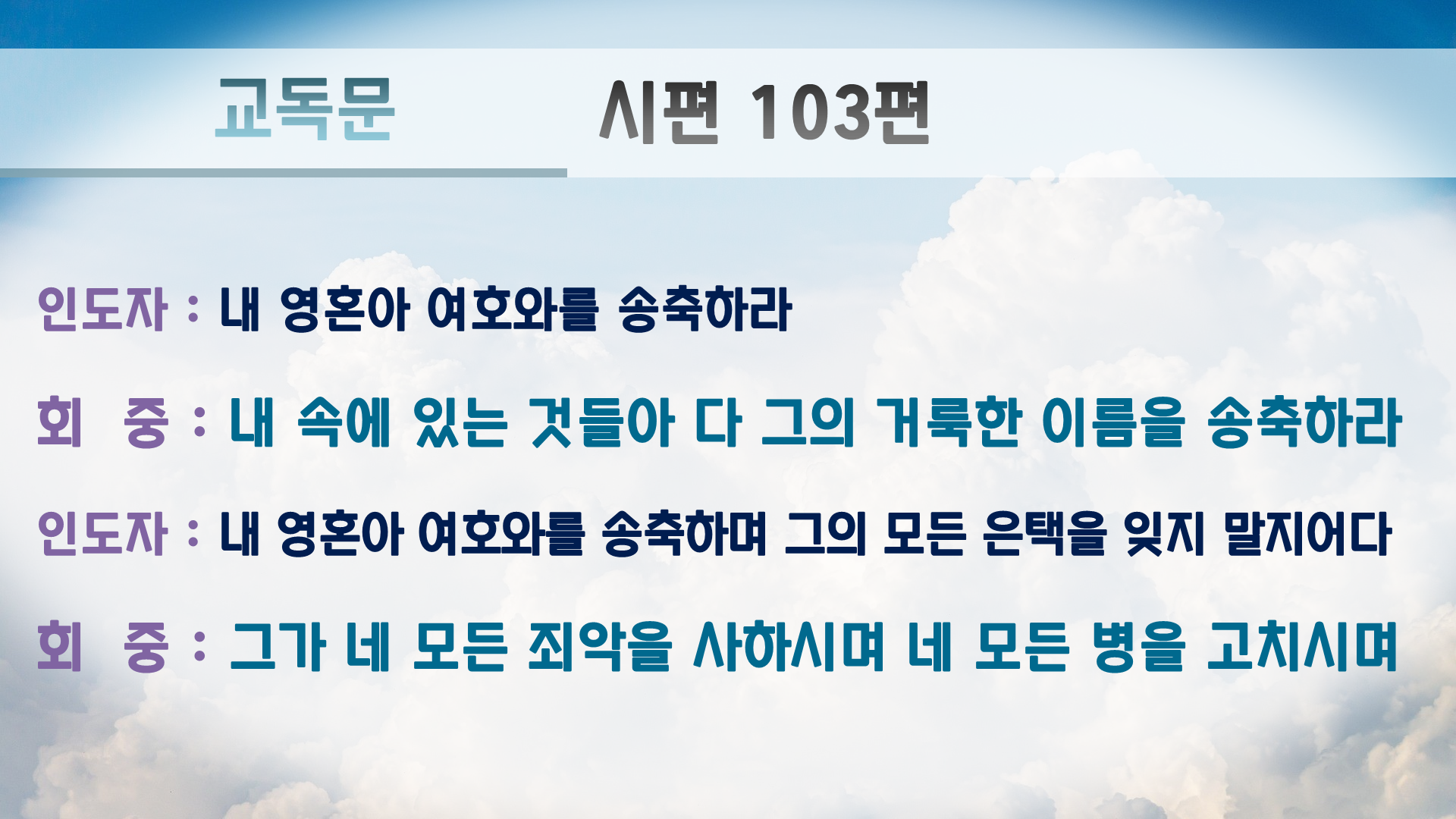 교독문에는 원래 '아멘'이 없지만 PPT만 보는 회중쪽에서 언제 끝나는지 몰라하셔서 끝나는 곳에 '아멘'을 추가 했습니다.