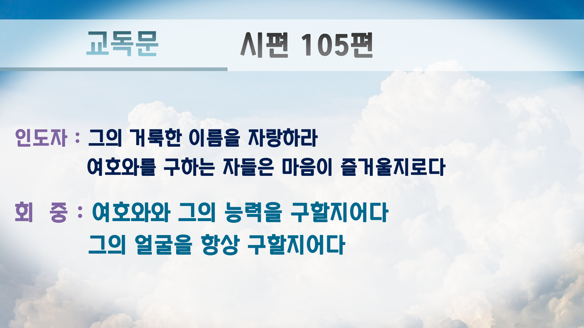 여호와와 그의 능력을 구할지어다 그의 얼굴을 항상 구할지어다