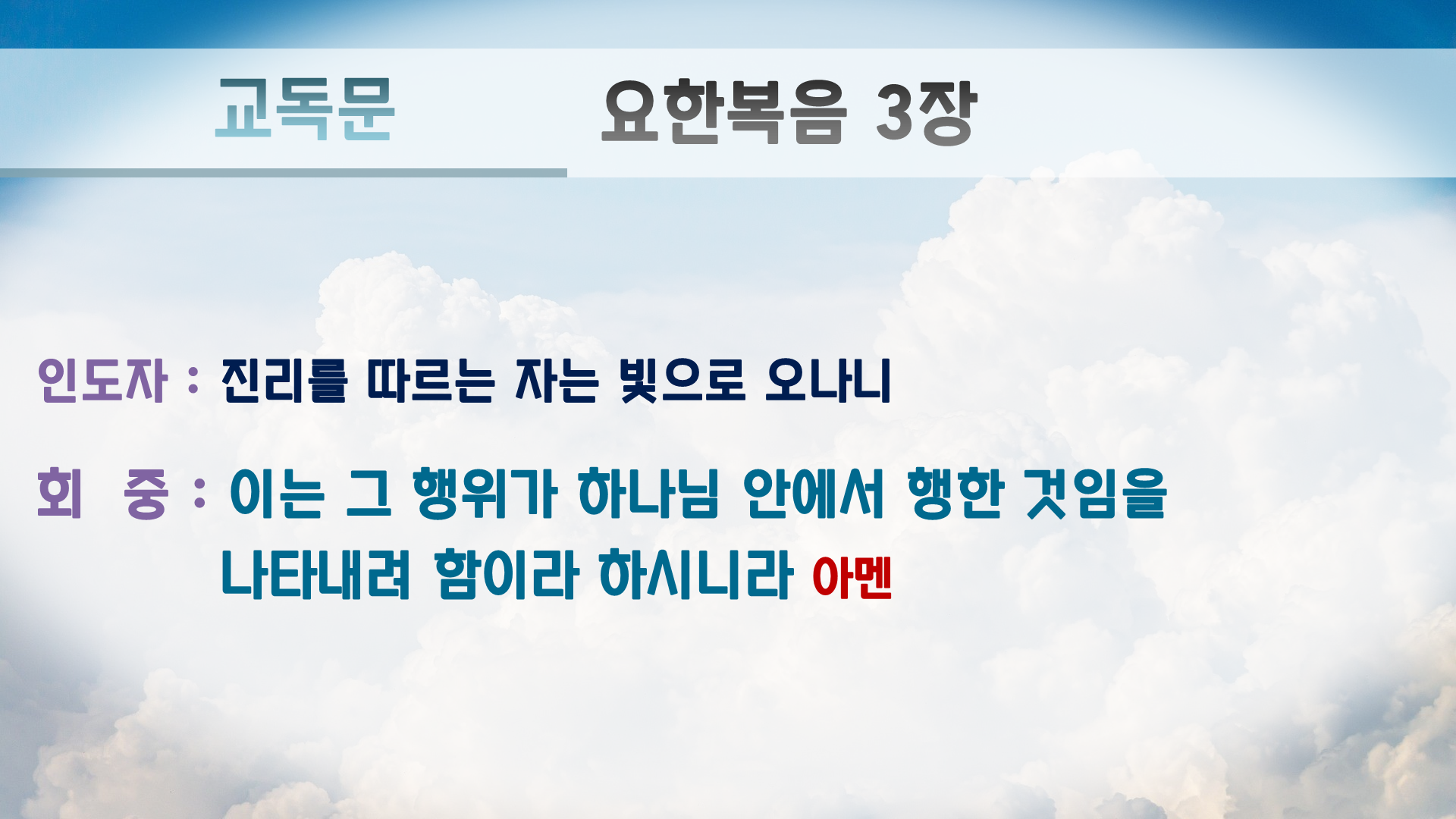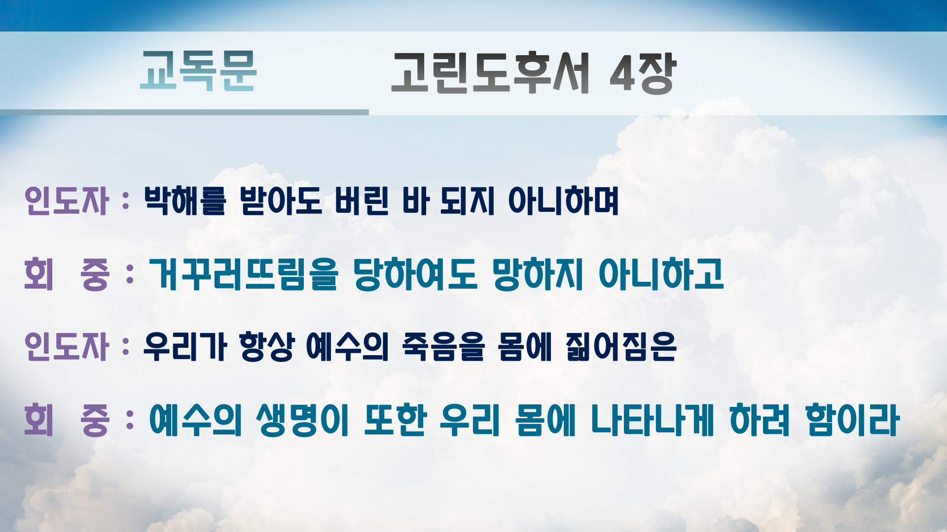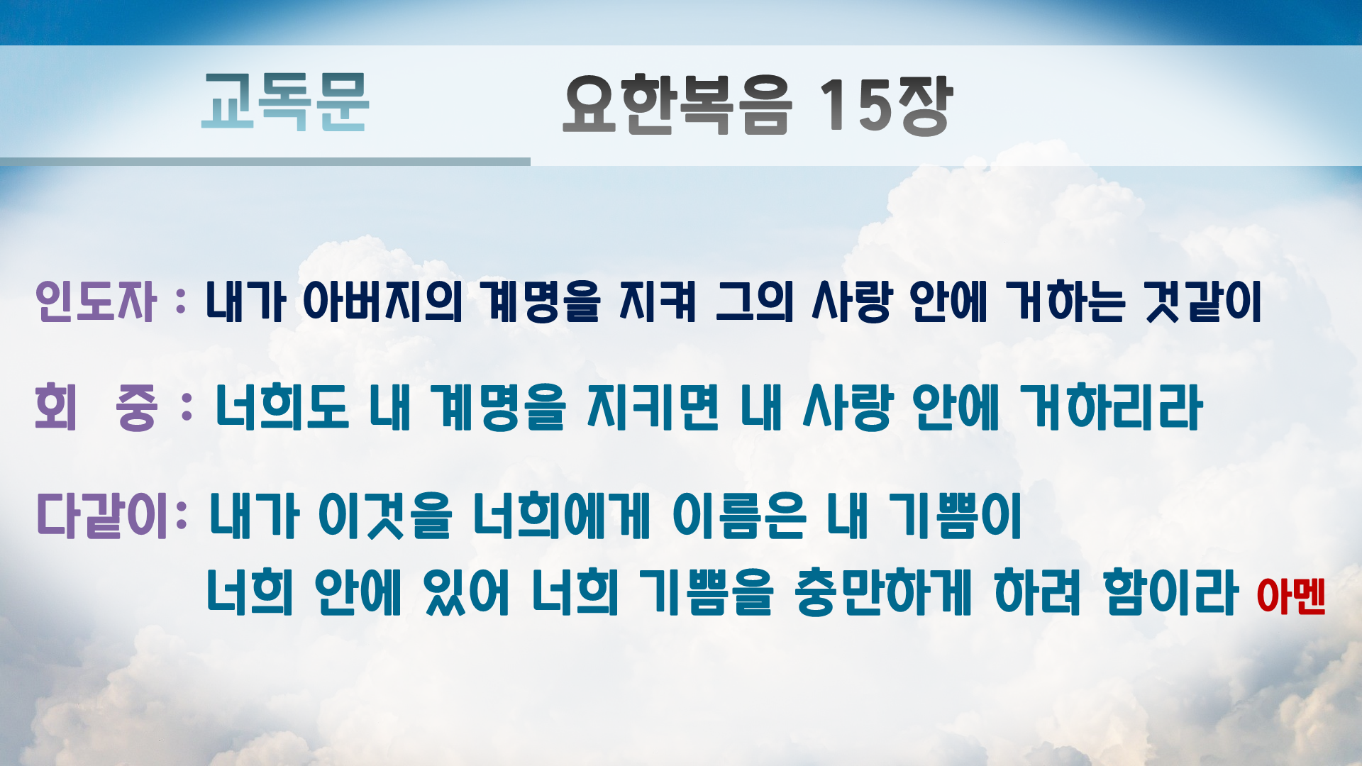 교독문에는 원래 '아멘'이 없지만 PPT만 보는 회중쪽에서 언제 끝나는지 몰라하셔서 끝나는 곳에 '아멘'을 추가 했습니다.
