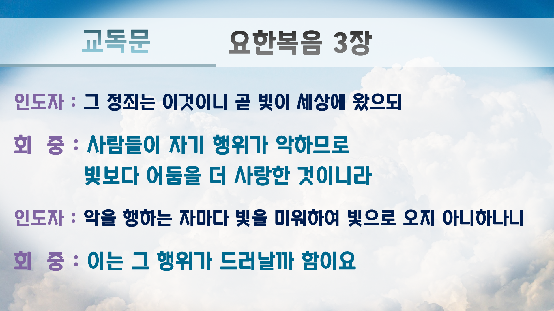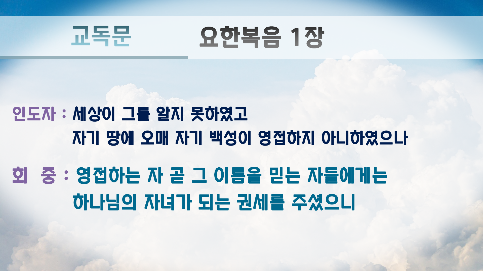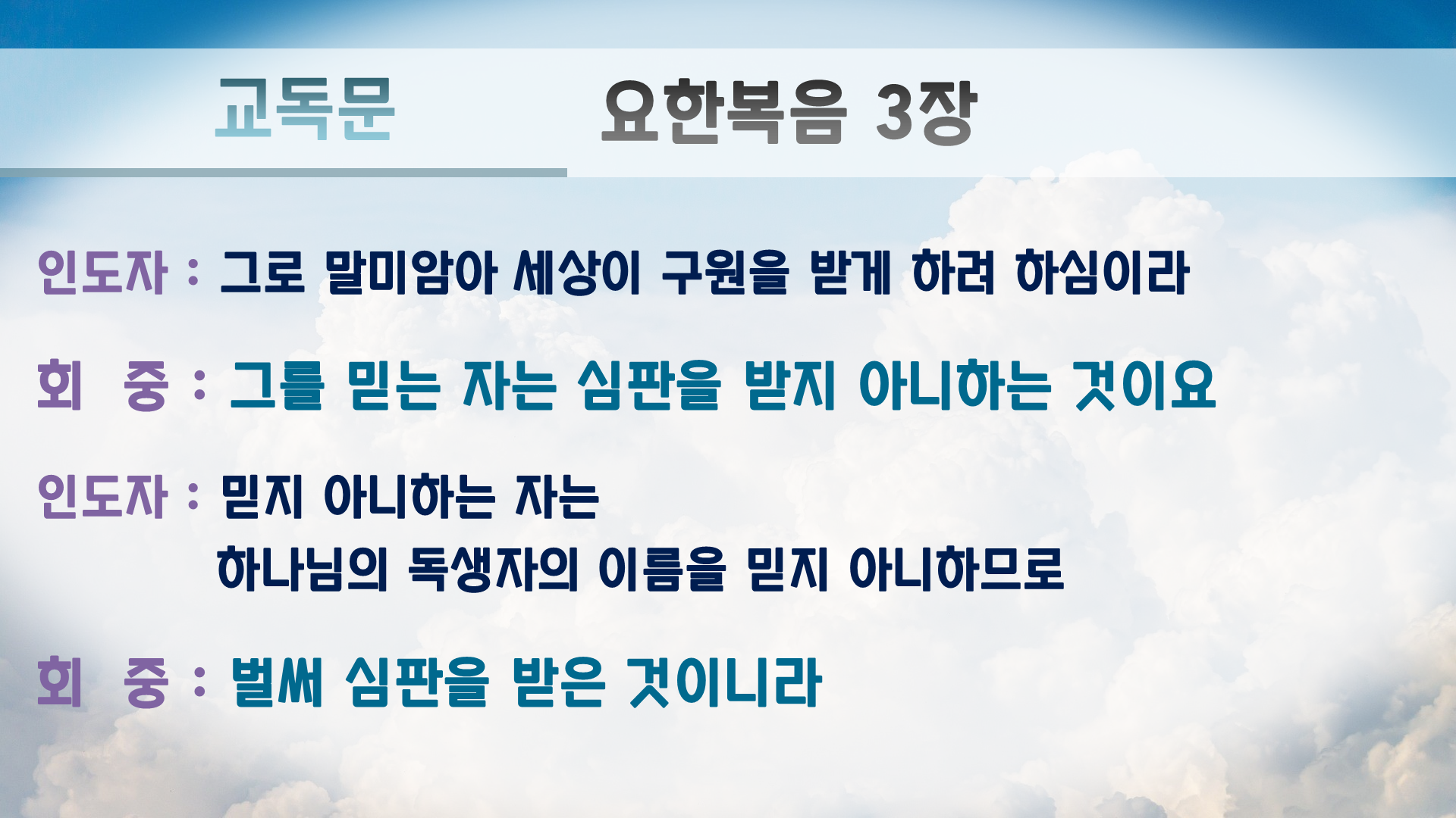 교독문에는 원래 '아멘'이 없지만 PPT만 보는 회중쪽에서 언제 끝나는지 몰라하셔서 끝나는 곳에 '아멘'을 추가 했습니다.