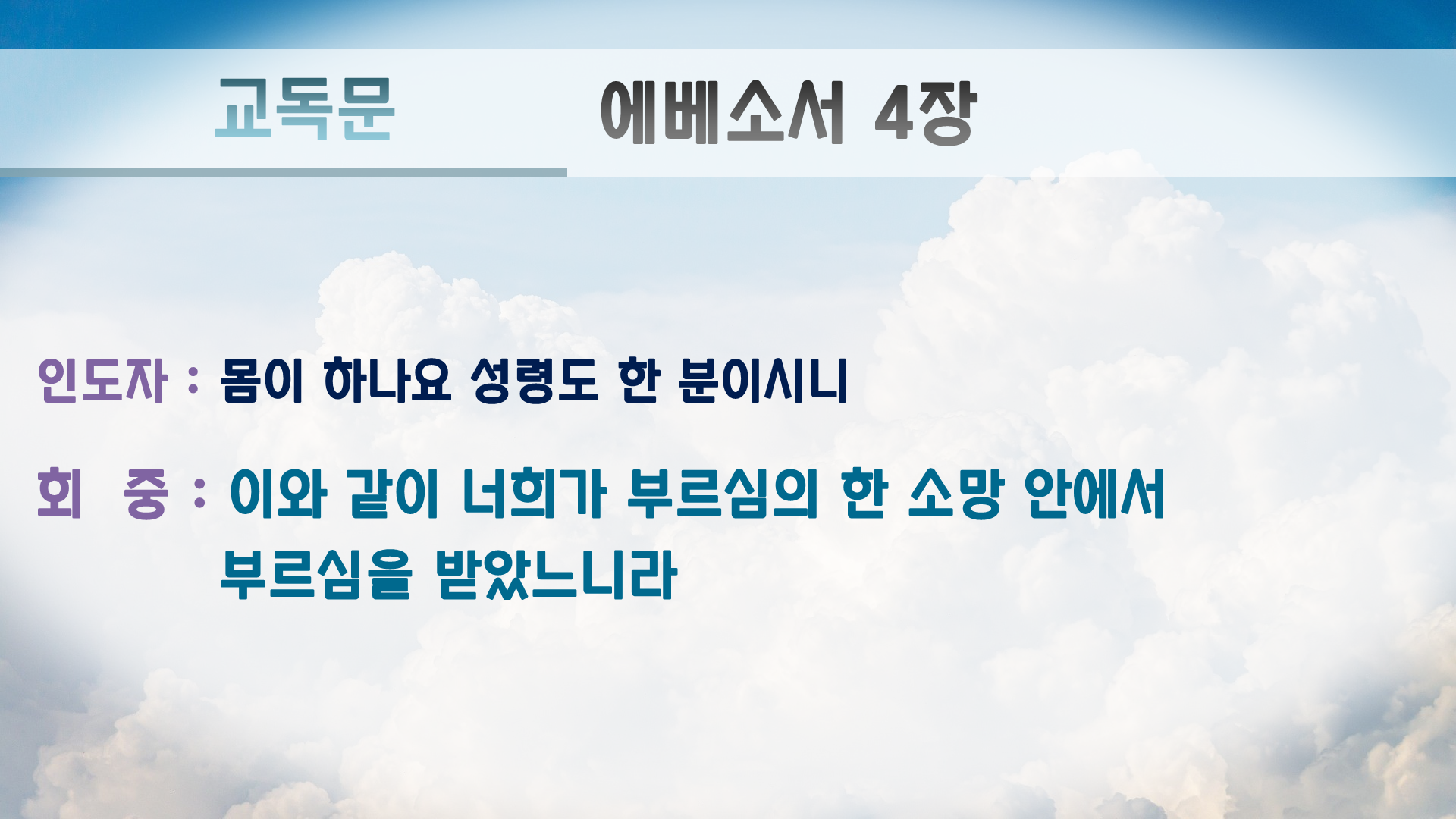 몸이 하나요 성령도 한 분이시니