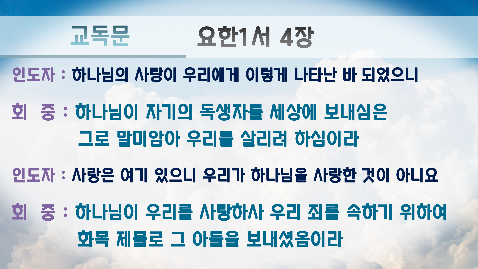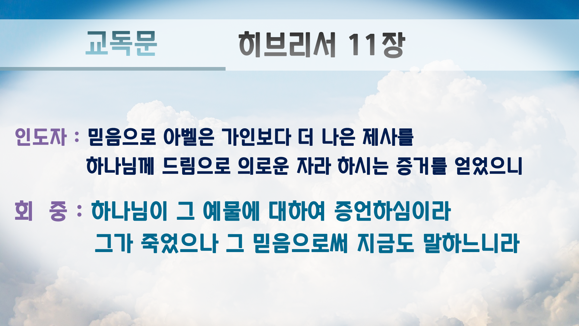교독문에는 원래 '아멘'이 없지만 PPT만 보는 회중쪽에서 언제 끝나는지 몰라하셔서 끝나는 곳에 '아멘'을 추가 했습니다.