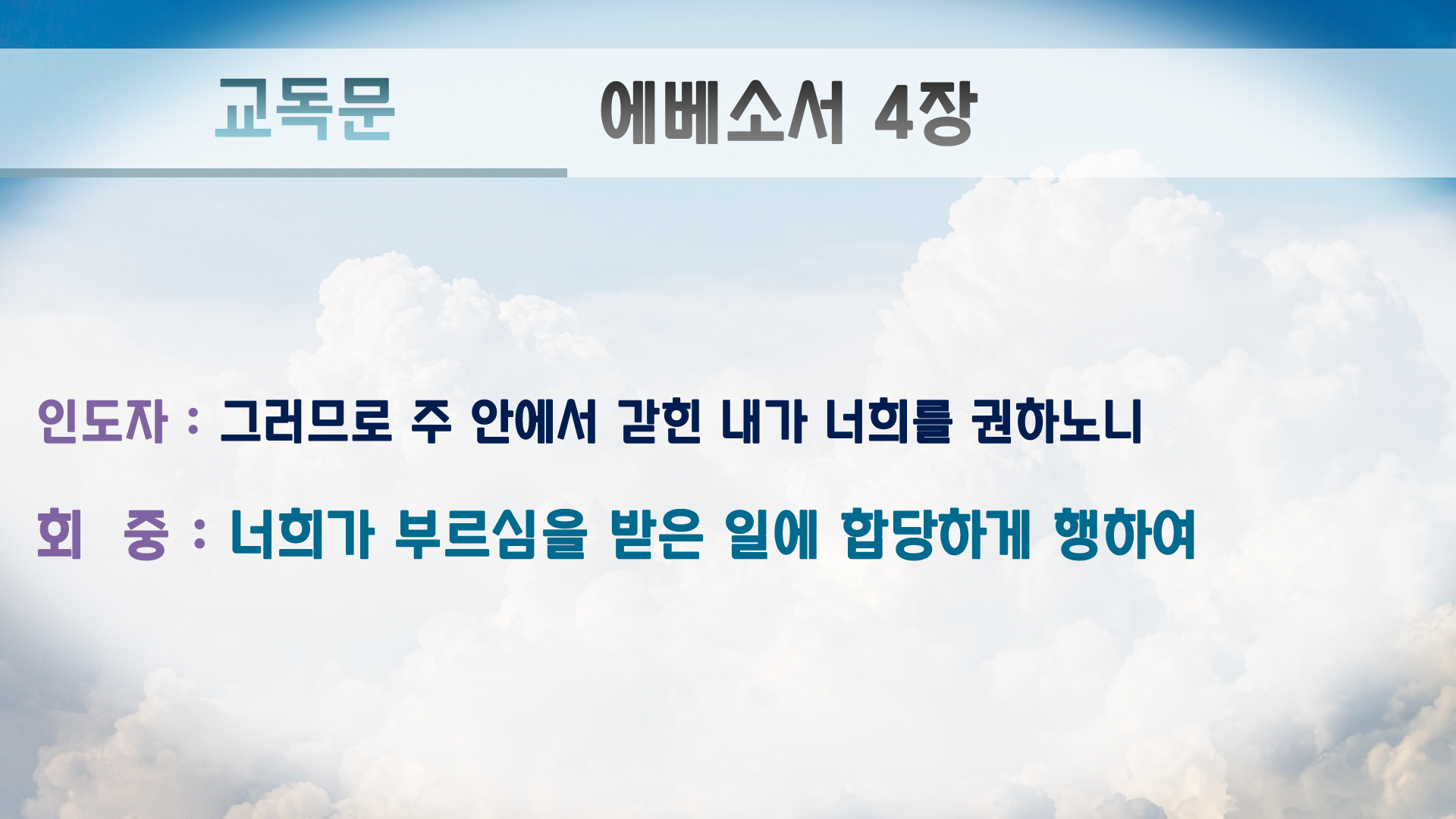 그러므로 주 안에서 갇힌 내가 너희를 권하노니