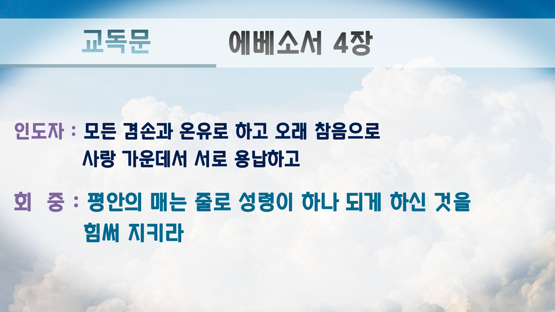 평안의 매는 줄로 성령이 하나 되게 하신 것을 힘써 지키라