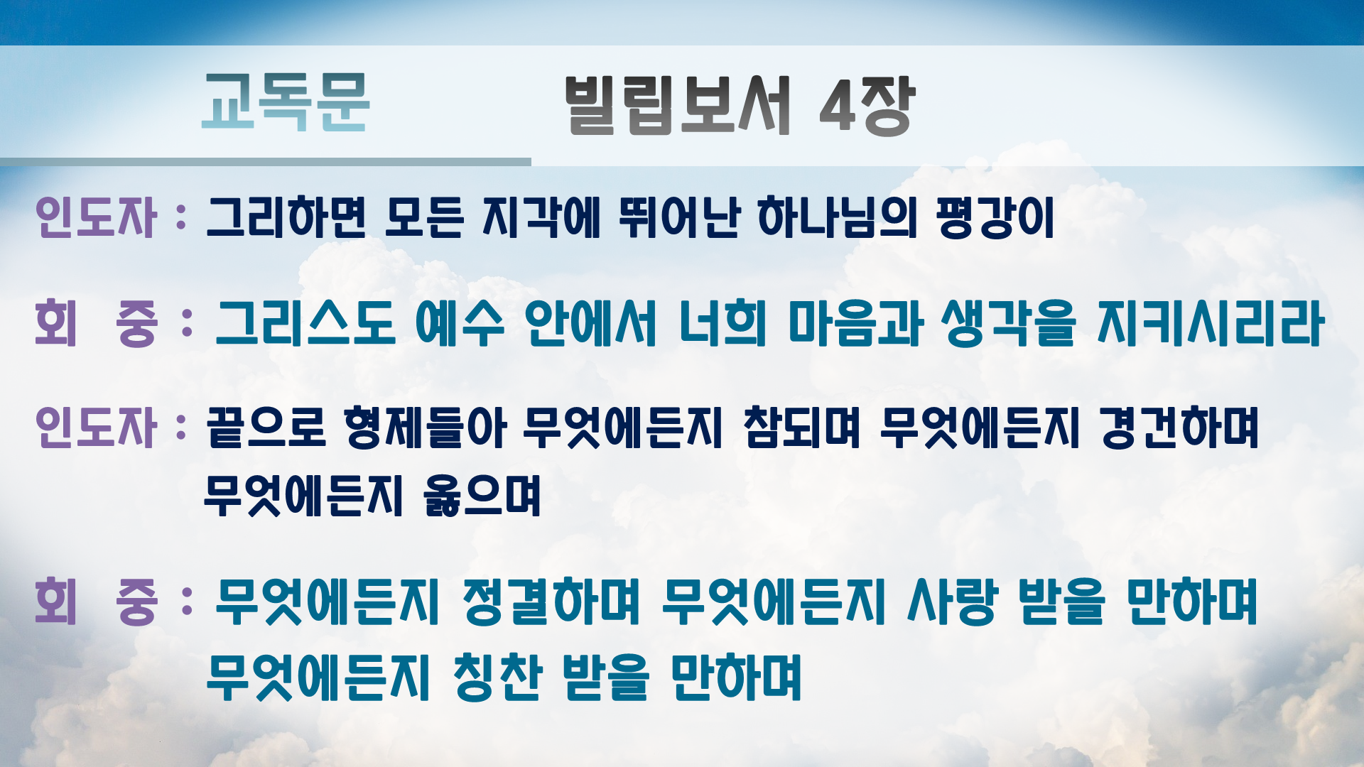 (다같이) 그리하면 평강의 하나님이 너희와 함께 계시리라(4-9)