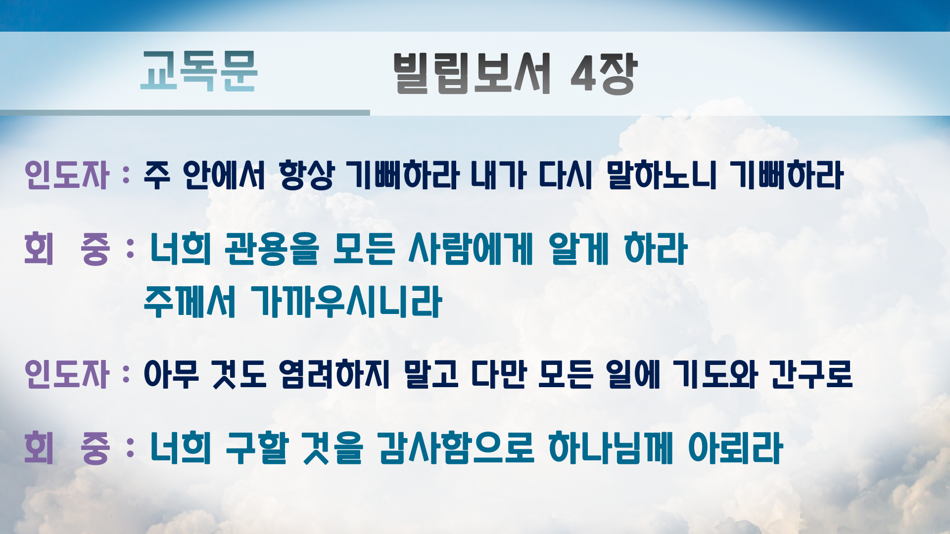 주 안에서 항상 기뻐하라 내가 다시 말하노니 기뻐하라