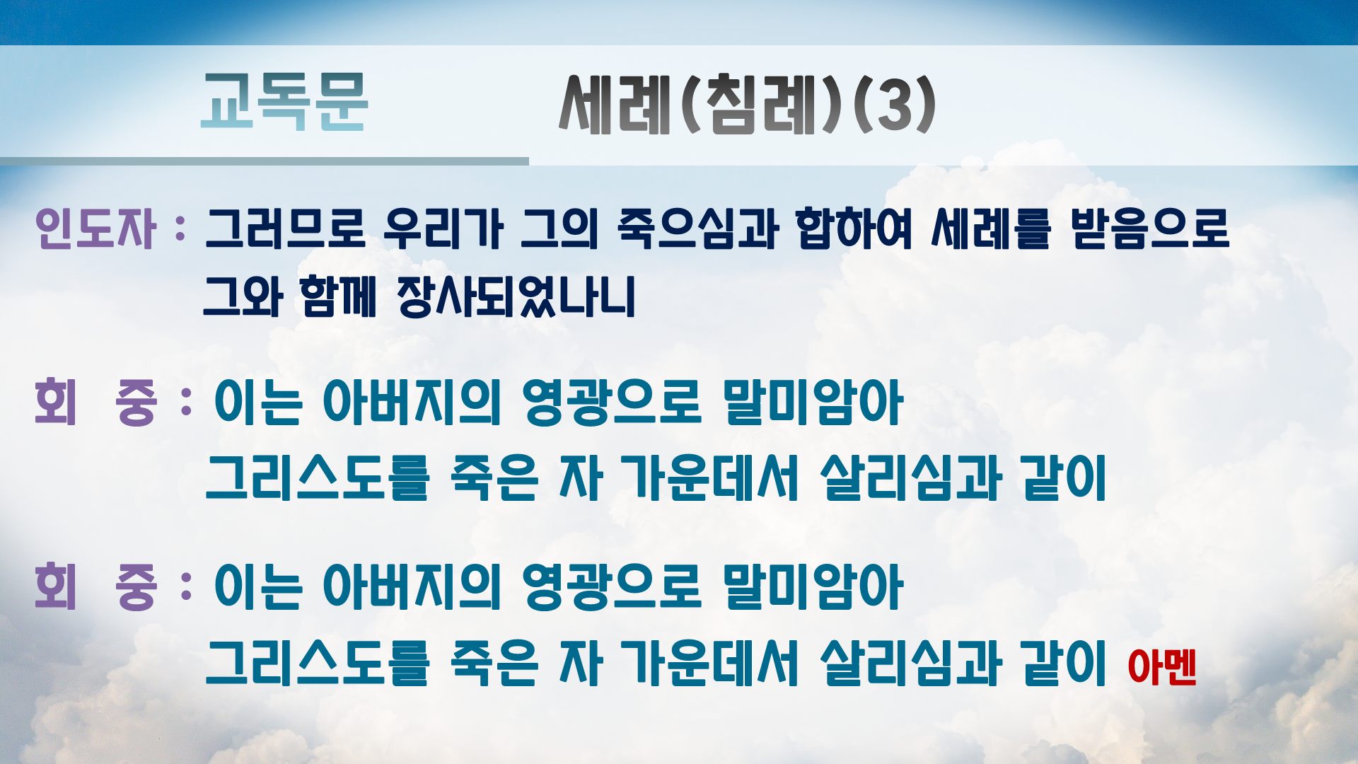 교독문에는 원래 '아멘'이 없지만 PPT만 보는 회중쪽에서 언제 끝나는지 몰라하셔서 끝나는 곳에 '아멘'을 추가 했습니다.