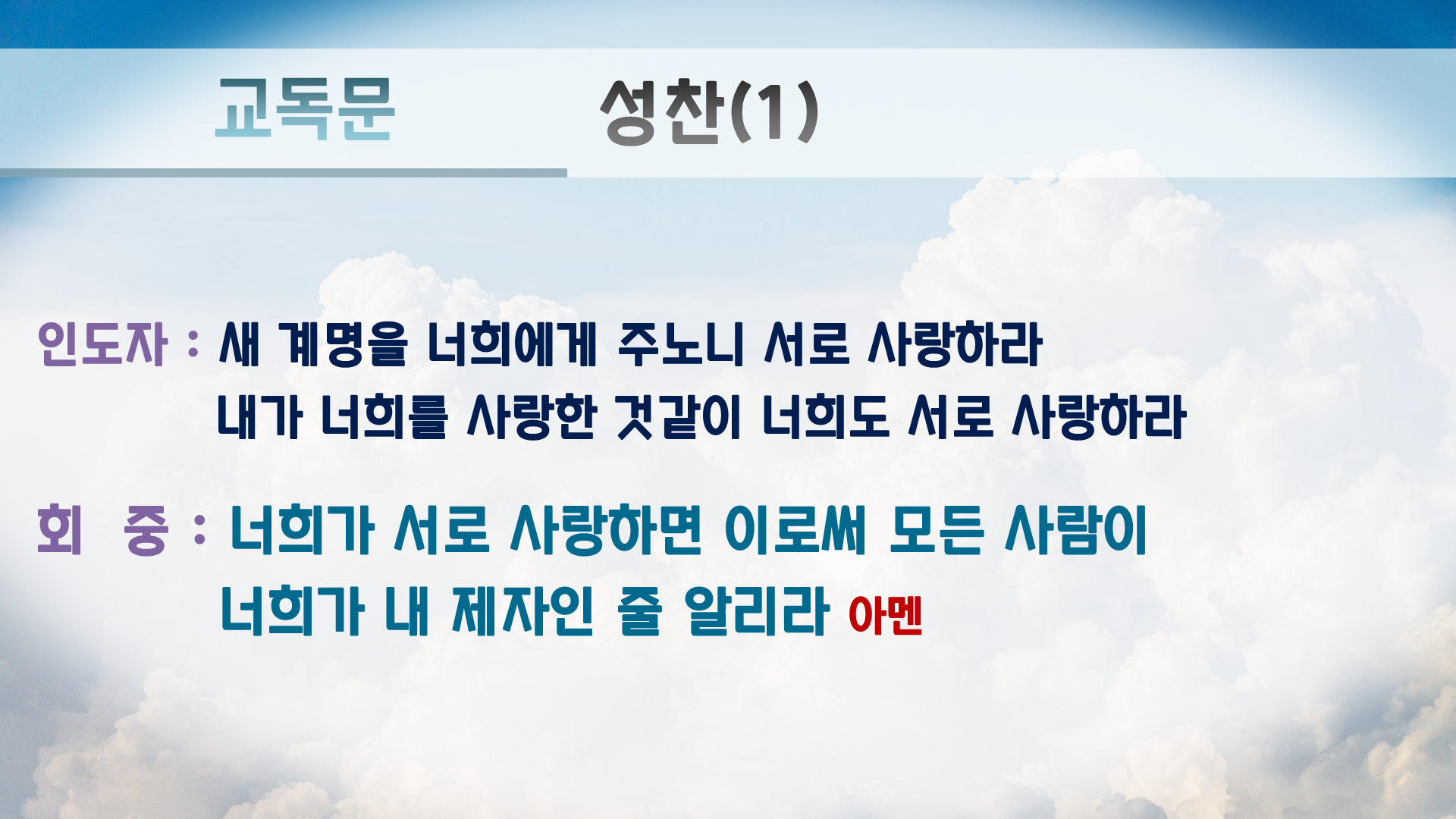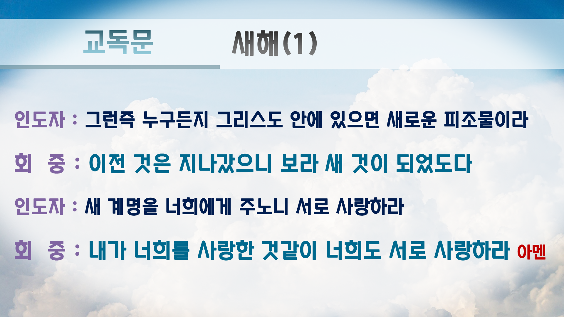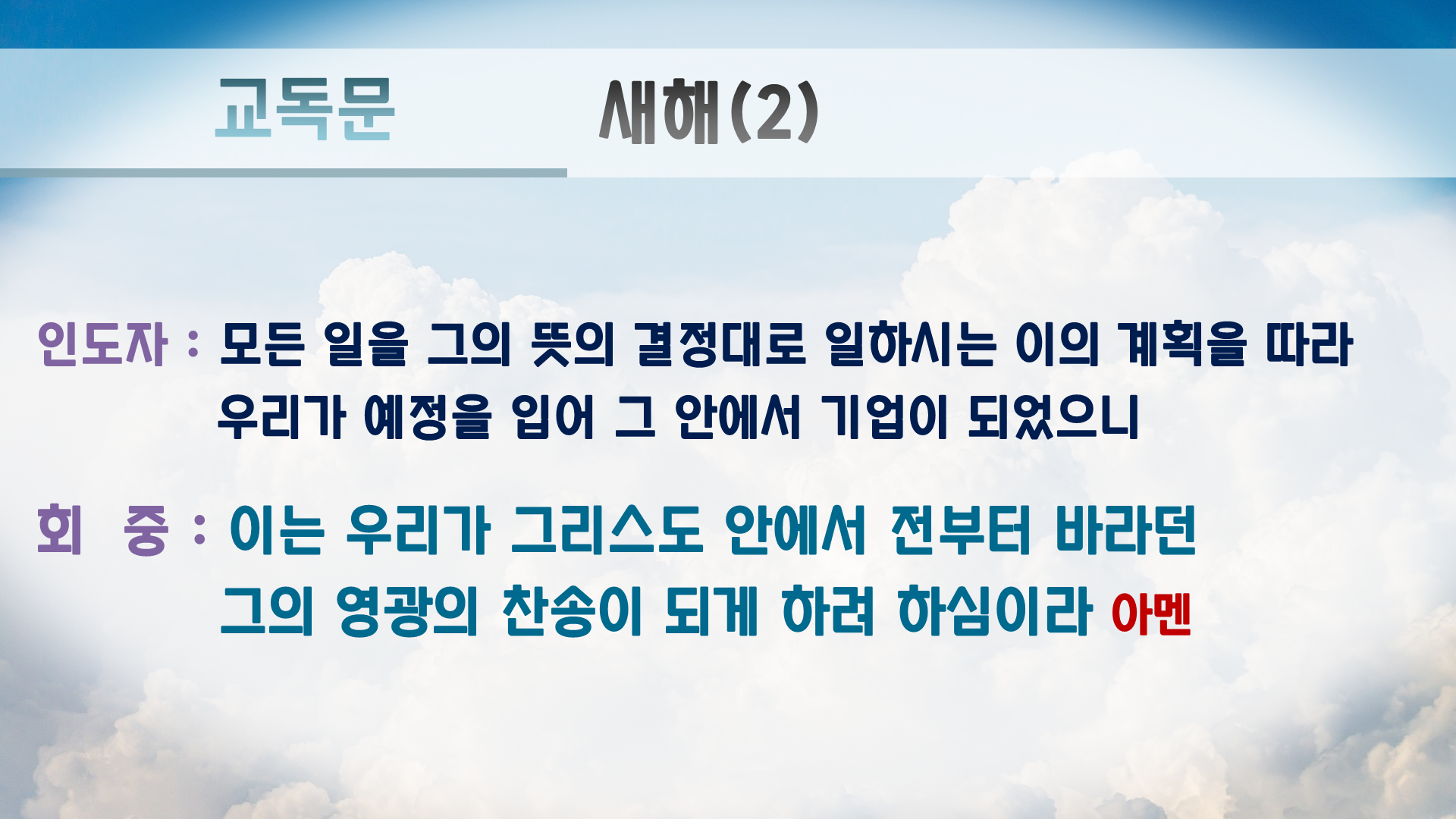 교독문에는 원래 '아멘'이 없지만 PPT만 보는 회중쪽에서 언제 끝나는지 몰라하셔서 끝나는 곳에 '아멘'을 추가 했습니다.