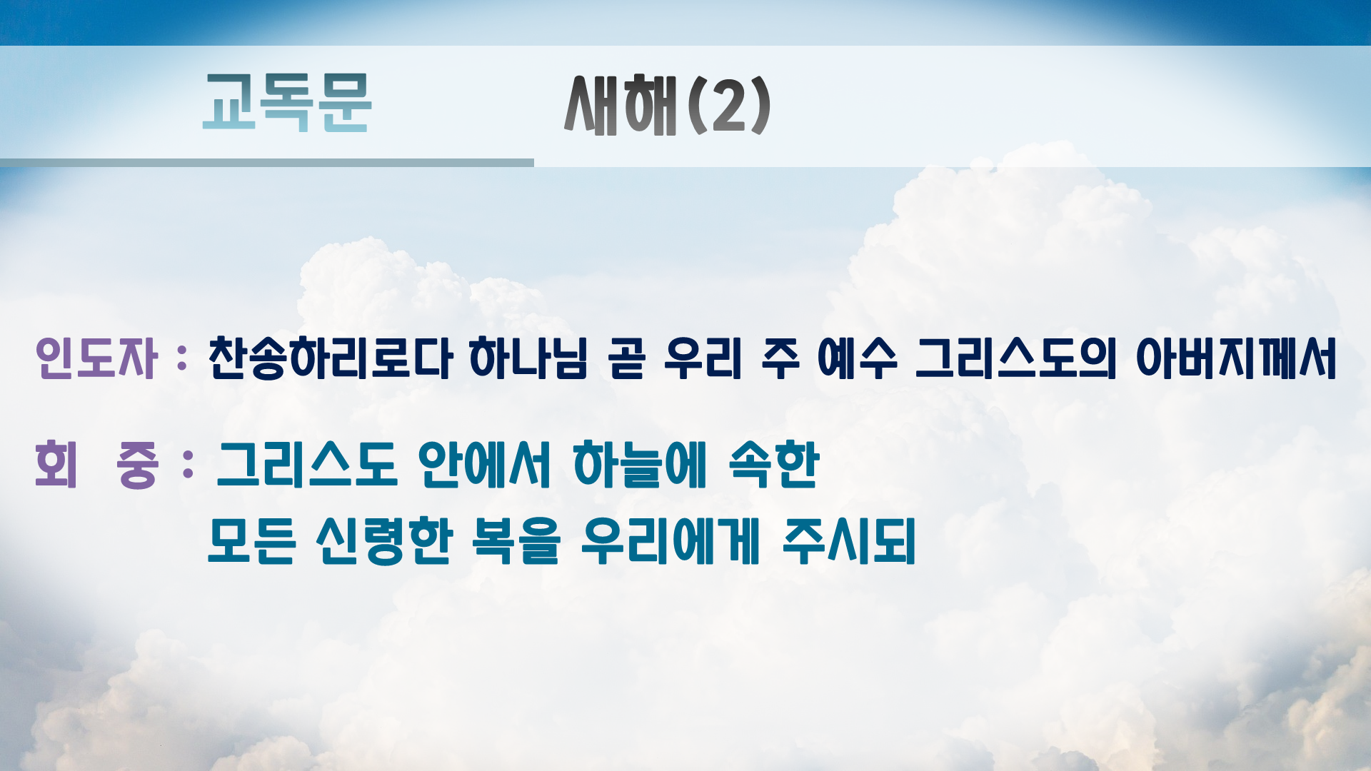 그리스도 안에서 하늘에 속한 모든 신령한 복을 우리에게 주시되